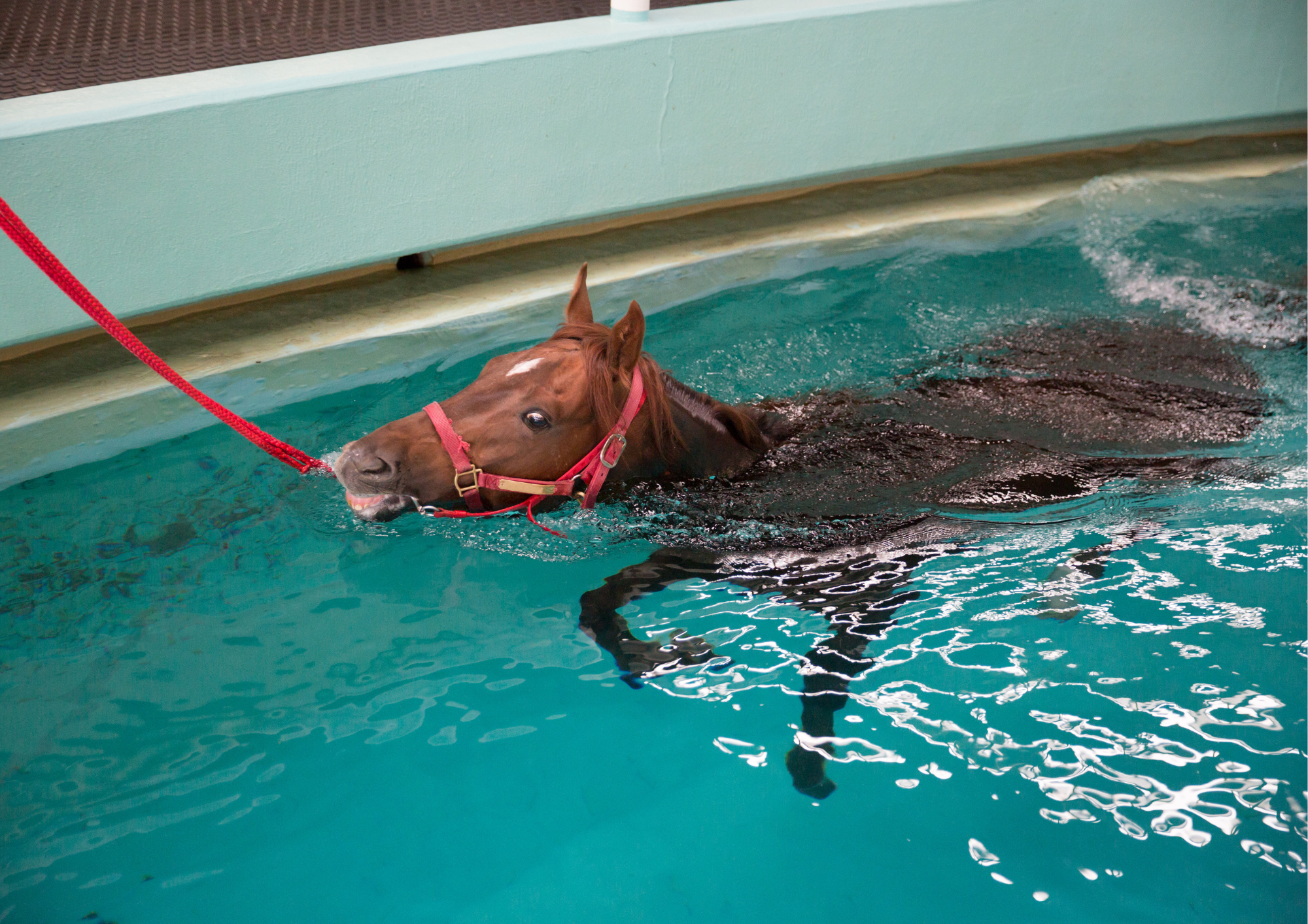 La nage ne provoque aucun traumatisme, il n’y a ni choc, ni charge sur les articulations. Ce sont souvent pour ces raisons que les entraîneurs s’orientent vers la nage en piscine pour les chevaux de course.