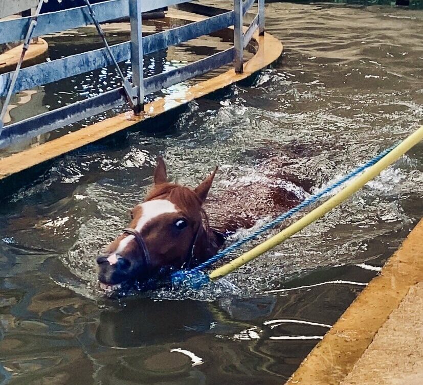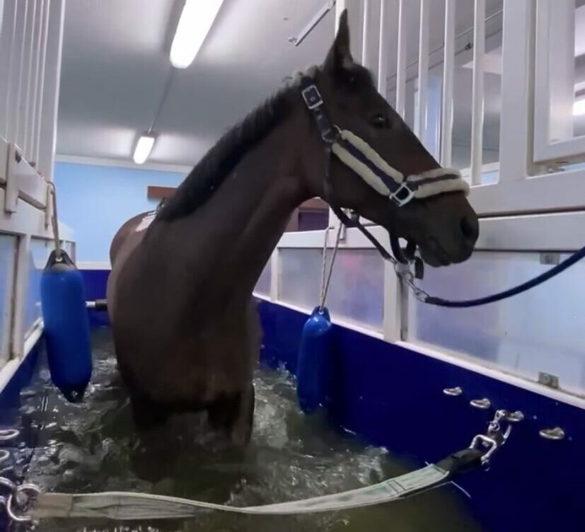 - La piscine : Le cheval est totalement immergé et nage dans un couloir d’eau. La nage permet d’accompagner le cheval dans sa guérison, sa rééducationet/ou l’amélioration de ses performances sportives. L’immersion dans l’eau soulage le corps et les membres de contraintes telle que la pesanteur.